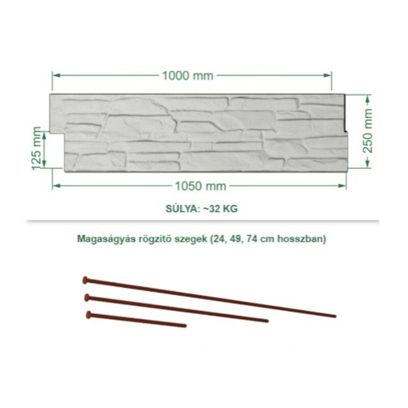 - Magaságyás rögzítő szeg 49 cm: 4 db